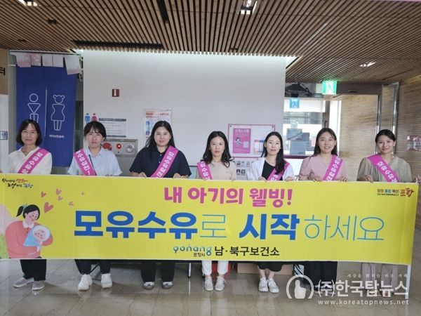 ㈜한국탑뉴스 송행임 기자 | 포항시 남・북구보건소는 7일 ‘세계모유수유 주간’을 맞아 모유수유를 권장하고 그 중요성을 알리는 모유수유 실천 캠페인을 진행했다.