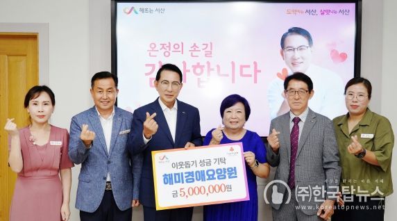 ㈜한국탑뉴스 송행임 기자 | 충남 서산시는 7일 해미경애요양원(원장 위경애)이 어려운 이웃을 위한 성금 500만 원을 기탁했다고 밝혔다.