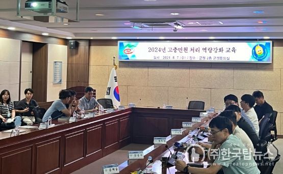 ㈜한국탑뉴스 송행임 기자 | 창녕군은 지난 7일 창녕군청 군정회의실에서 민원 담당 팀장 및 담당자를 대상으로 공무원 민원 응대력 향상을 위한 고충 민원 처리 역량 강화교육을 시행했다고 밝혔다.