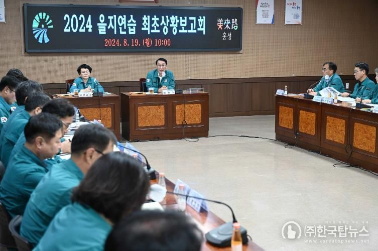 ㈜한국탑뉴스 송행임 기자 | 홍성군은 19일 군청 회의실에서 간부공무원 20여 명이 참석한 가운데 이용록 군수 주재로‘2024년 을지연습 최초상황보고회’를 개최했다.