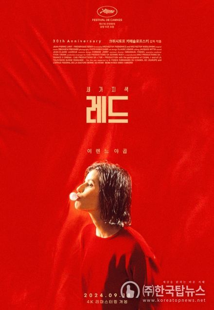 ㈜한국탑뉴스 한민석 기자 | 38개 영화제 초청, 64개 부문 노미네이트, 30개 부문 수상한 '세 가지 색: 레드'가 바로 오늘 30주년 기념 4K 리마스터링 버전 개봉 소식을 알리며 개봉주 다채로운 이벤트를 공개했다.[감독: 크쥐시토프 키에슬로프스키 | 수입: ㈜ 안다미로 ㅣ 제공/배급: ㈜스튜디오 산타클로스엔터테인먼트 ㅣ 공동배급: ㈜안다미로]