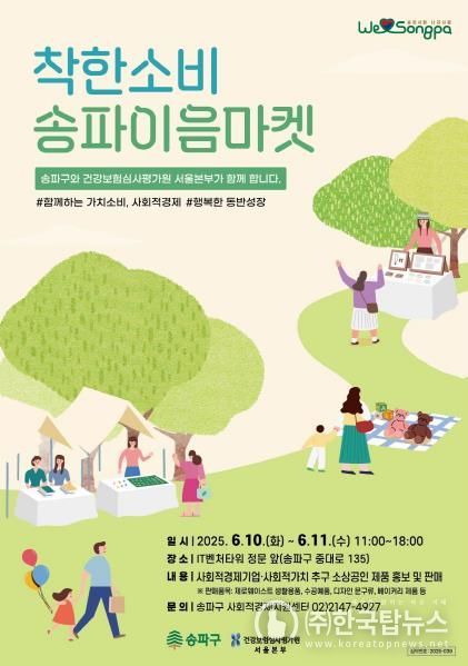 ㈜한국탑뉴스 차복원 기자 | 서울 송파구는 오는 6월 10일부터 11일까지 양일간 사회적경제 플리마켓 ‘착한 소비, 송파이음마켓’을 개최한다.