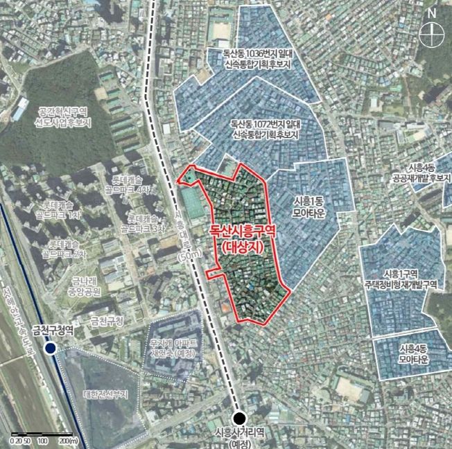 해당 구역은 1호선 금천구청역과 개통 예정인 신안산선 시흥사거리역을 함께 이용할 수 있는 위치다.