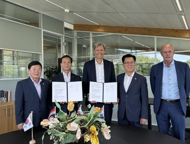 ㈜한국탑뉴스 차복원 기자 | 스마트농업 우수정책 벤치마킹을 위해 네덜란드를 견학 중인 음성군 대표단은 첫날 글로벌 스마트팜 솔루션 1위 기업 프리바(PRIVA)와 업무협약을 체결하며 ‘음성 그린에너지 스마트농업타운 조성사업’ 연계협력의 첫발을 내디뎠다.
