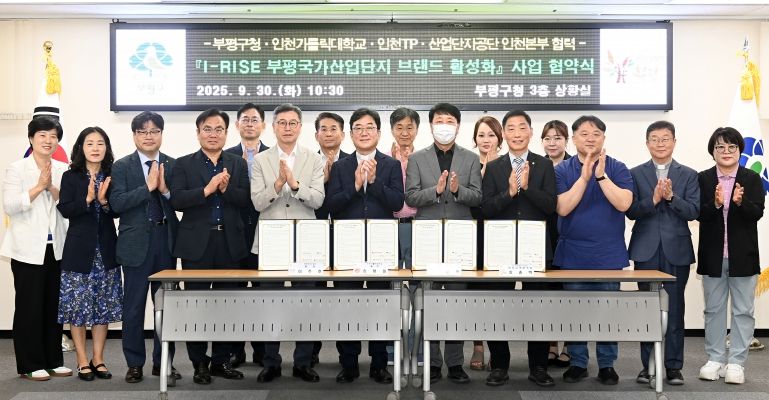 ㈜한국탑뉴스 차복원 기자 | 부평구는 지난 30일 구청 상황실에서 인천가톨릭대학교 ·인천테크노파크·한국산업단지공단과 함께 ‘I-RISE 부평국가산업단지 브랜드 활성화 사업’ 협약을 체결했다.