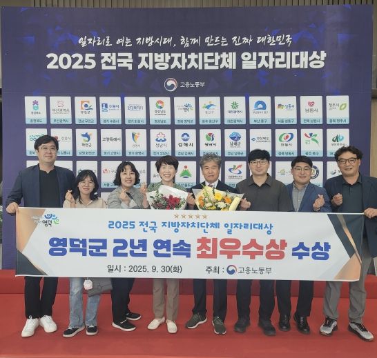 ㈜한국탑뉴스 차복원 기자 | 영덕군은 지난달 30일 고용노동부가 주최한 ‘2025년 전국 지방자치단체 일자리 대상’에서 작년에 이어 2년 연속 ‘최우수상’을 거머쥐었다.