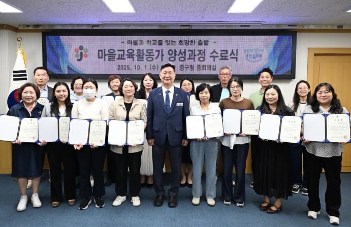 ㈜한국탑뉴스 차복원 기자 | 대전 중구는 1일 중구청 중회의실에서 행복이음교육지구 사업으로 추진한 ‘2025년 중구 마을교육활동가 양성과정’을 마무리하고 수료식을 개최했다고 밝혔다.