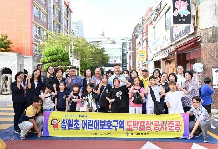 ㈜한국탑뉴스 차복원 기자 | 울산 중구가 삼일초등학교 어린이보호구역 도막 포장 공사를 마무리했다.