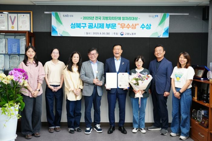 ㈜한국탑뉴스 차복원 기자 | 서울 성북구가 9월 30일 청주 오스코에서 열린 고용노동부 주관 ‘2025년 전국 지방자치단체 일자리대상’에서 공시제 부문 우수상을 받았다.