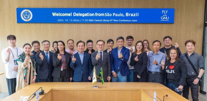 ㈜한국탑뉴스 차복원 기자 | 경상국립대학교는 브라질 상파울루시 대표단이 10월 13일 오전 경상국립대학교를 내방하여 권진회 총장을 예방하고 우주항공, 문화콘텐츠, 미디어 분야의 협력 방안을 논의했다고 밝혔다.