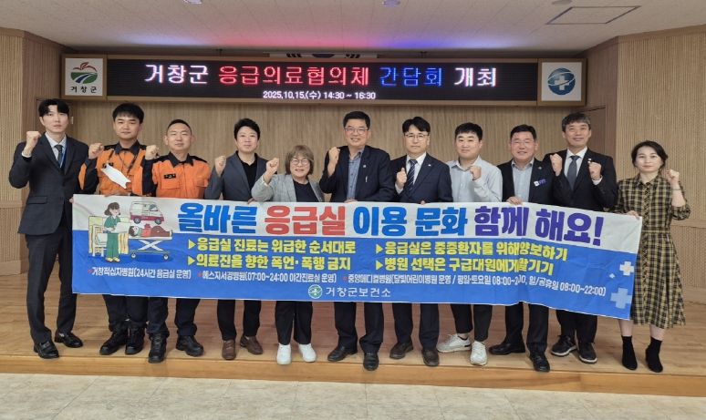 ㈜한국탑뉴스 송행임 기자 | 거창군은 2025년 하반기 응급의료협의체 간담회를 지난 15일 개최하고, 지역응급의료기관 응급 환자 분산과 이송체계 구축을 위한 다양한 방안을 논의했다.