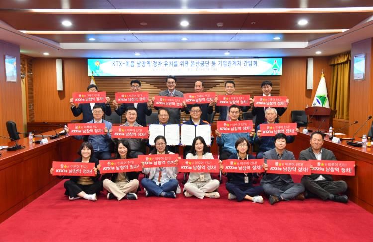 울주군은 21일 군청 이화홀에서 이순걸 군수와 온산공단, 새울원자력, 지역기업 관계자, 지역주민 등 20여명이 참석한 가운데 KTX-이음 남창역 정차 유치를 위한 관계자 간담회를 열고, 공동선언식을 가졌다.