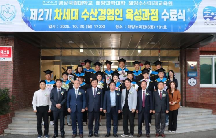 ㈜한국탑뉴스 차복원 기자 | 경상국립대학교 해양과학대학 해양수산미래교육원은 10월 20일 ‘제2기 통영시 차세대수산경영인 육성과정’ 수료식을 개최했다.