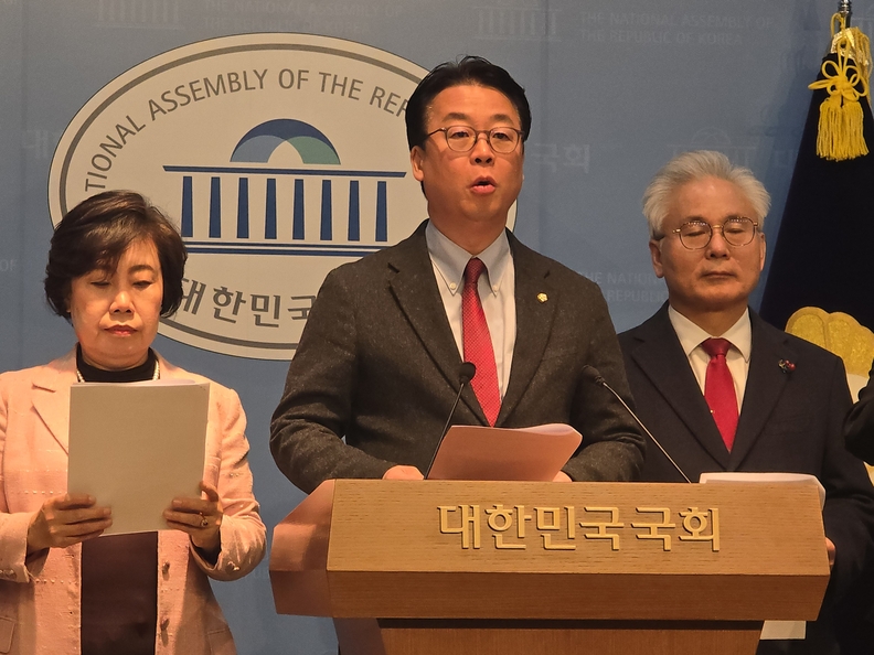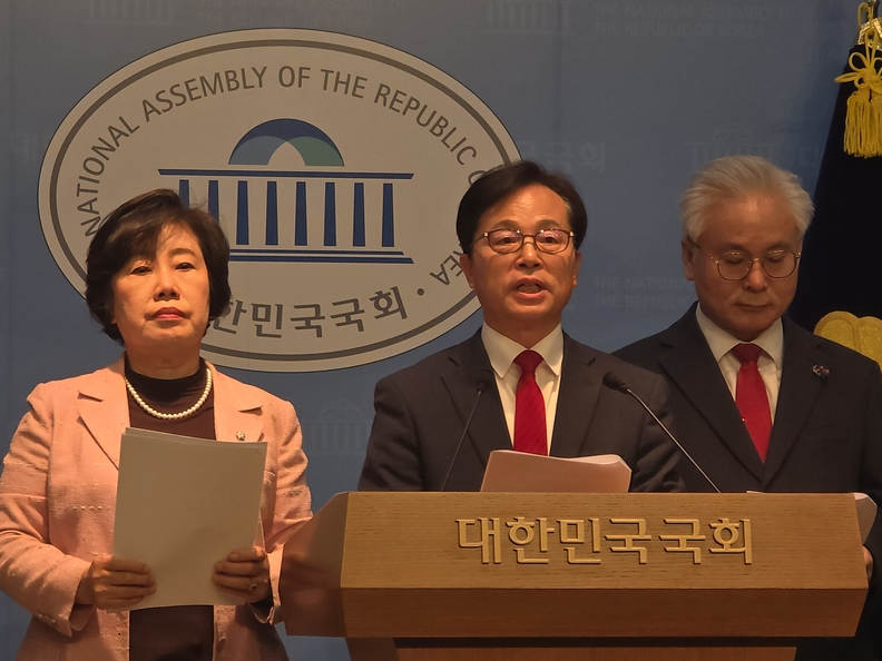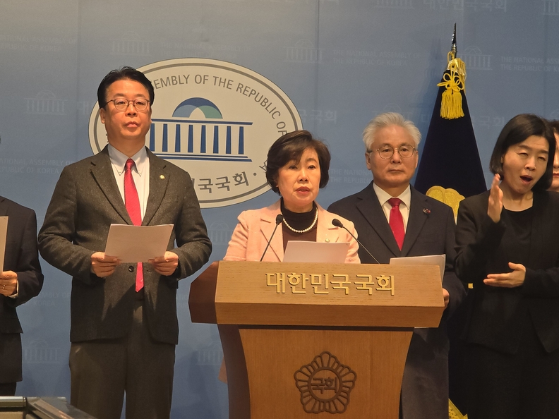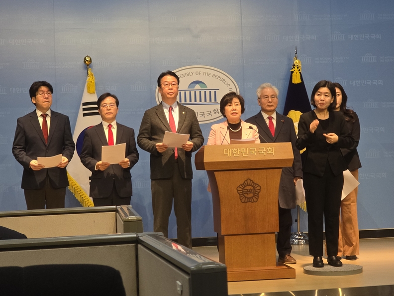 그리고 또 민중기 특검은 이번 통일교 관련 수사를 하면서 민주당도 분명히 정치자금을 지원했고 구체적인 진술을 했음에도 불구하고 수사 보고서 형태로만 남기고 이 부분에 대해서 전혀 보도되지도 않게 했다. 결국 동일한 잣대를 대입해야 하는데 민주당은 그냥 넘어가고 우리 당에 대해서는 아주 엄격한 잣대를 대어 결국 몇 명은 구속되는 그런 일이 벌어졌다. 특검은 정치적으로 중립 입장에서 그리고 국민을 위해서 일을 해야 하는데 이것은 당연히 한 정파의 도구로 이용되고 있는 것을 우리가 잘 아는 것이라고 보여진다. 여기에 대해서 여러분들이 용자를 심각하게 생각하고 성명을 발표하고자 한다. 저희는 국민의힘의 사법 정의 수호 및 복제 조직 특위 위원회이고 같이 하신 분들을 소개를 해 드리겠다. 저는 조배숙 의원, 윤영근 의원, 이준호 대변인, 서종대 대변인, 정경욱 의원을 모셨다. 성명서를 낭독하도록 하겠다.”