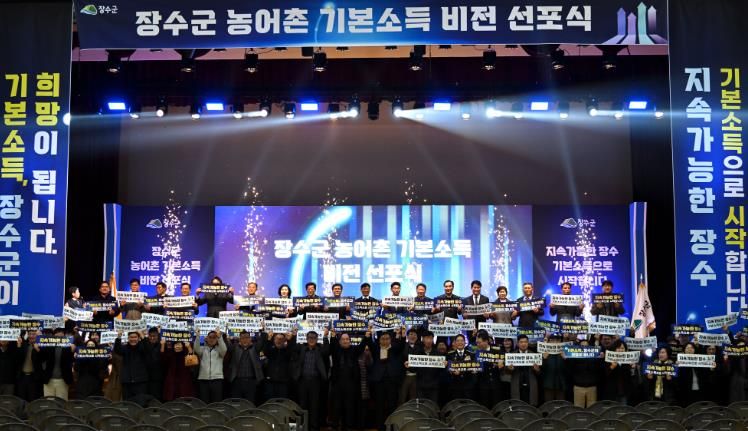 ㈜한국탑뉴스 차복원 기자 | 장수군은 8일 한누리전당 산디관에서 ‘농어촌 기본소득 비전 선포식’ 행사가 성황리에 개최됐다고 밝혔다.