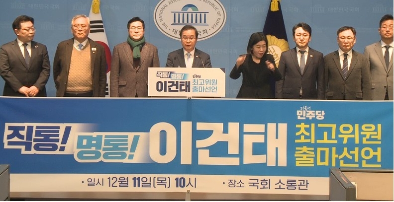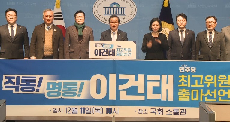 더불어민주당 경기 부천시병 국회의원 이건태가 12월 11일 국회 소통관 기자회견장에서 최고위원 출마를 선언했다.