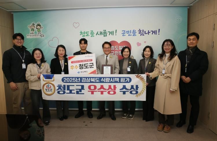 ㈜한국탑뉴스 차복원 기자 | 청도군은 지난 18일 경상북도가 주관하여 도내 22개 시·군을 대상으로 실시한 ‘2025년 경상북도 식량시책 평가’에서 우수상을 수상했다고 밝혔다.