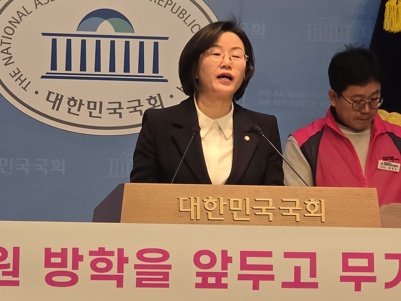 ▲진보당 정혜경의원 전국학교비정규직노동조합 배제 중단을 요구하는 기자회견