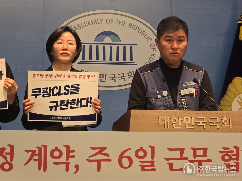 강 위원장은 “격주 5일제로 쉬고 싶으면 그만큼 돈을 내고 쉬라는 논리”라며 “세상 어느 곳에 이런 방식의 휴무가 있느냐”고 분노했다. 특히 기사들이 법적 권리를 주장하며 신규 계약을 거부하자, 대리점 측은 기존의 격주 5일 근무 형태를 모두 ‘주 6일제’로 변경하겠다고 통보했다. 쿠팡이 1년 넘게 홍보해 온 야간배송 격주 5일제가 현장에서는 아무런 강제력 없는 ‘휴짓조각’임이 드러난 셈이다.