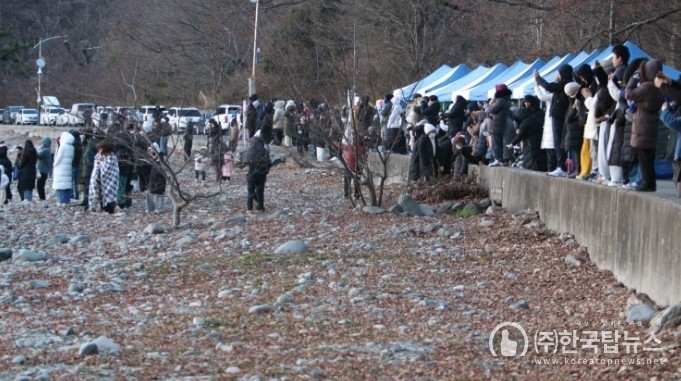 다소 쌀쌀하고 차가운 겨울 날씨 속에서도 떠오르는 새해 첫 해를 바라보며 탄성을 터뜨리는 관광객들과 그 순간을 담으려는 주민들로 물건항 바닷가는 이른 새벽부터 북새통을 이뤘다.