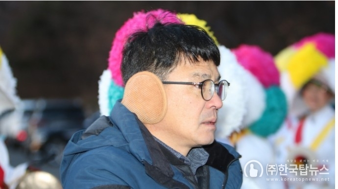 ▲병오년 떡국나눔을 하는 물건마을 이장님(사진출처=한국탑뉴스)