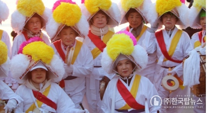 ▲물건마을 부녀회원들의 새해맞이 풍악놀이(사진출처-한국탑뉴스)