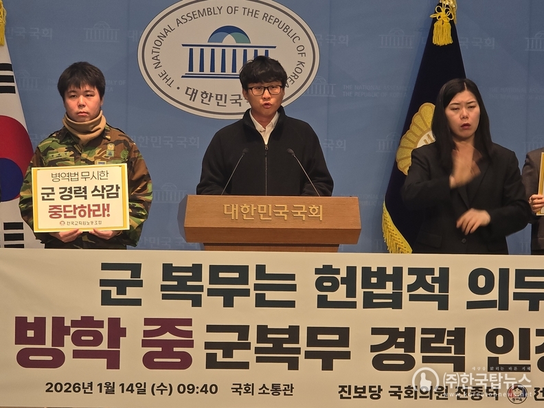 기자회견에 나선 전교조 전승혁 부위원장은 “국가가 8월에 부른 교사는 경력을 삭감당하고, 9월에 입영한 교사는 인정받는 어처구니없는 차별이 지속되고 있다”며 “교육부는 방학 중 입대한 교사들을 마치 학기 중에 공부를 빼먹고 군대로 도망간 학생처럼 취급하며 군 복무의 가치를 스스로 깎아내리고 있다”고 비판했다.