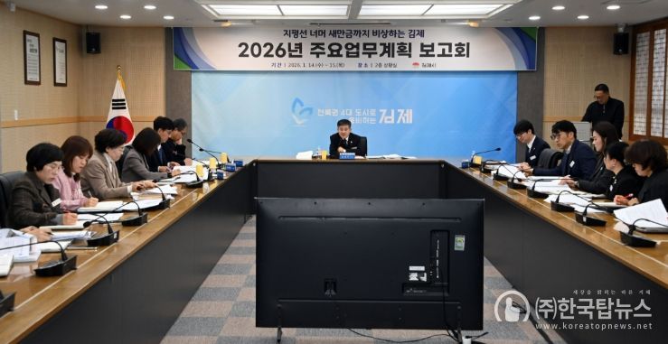 ㈜한국탑뉴스 송행임 기자 | 김제시는 지난 14일부터 15일까지 2일간 정성주 시장 주재로‘2026년 주요업무계획 보고회’를 개최했다고 밝혔다.