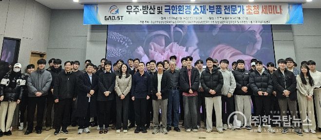 ㈜한국탑뉴스 송행임 기자 | 경상국립대학교 경남우주항공방산과학기술원(GADIST) 소속 ‘우주·방산 첨단소재 연구센터’와 ‘우주환경 부품·소재 개발지원센터’는 1월 14일 우주항공산학협력관에서 ‘우주·방산 및 극한환경 소재·부품 분야 전문가 초청 세미나’를 개최했다.