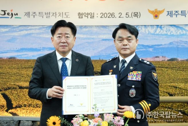 ㈜한국탑뉴스 차복원 기자 | 제주특별자치도와 제주특별자치도경찰청이 12년 만에 사무분담 협약을 전면 개정하고, 정부 국정과제인 ‘자치경찰제 전면시행’을 제주에서 선도적으로 구현하기로 뜻을 모았다.
