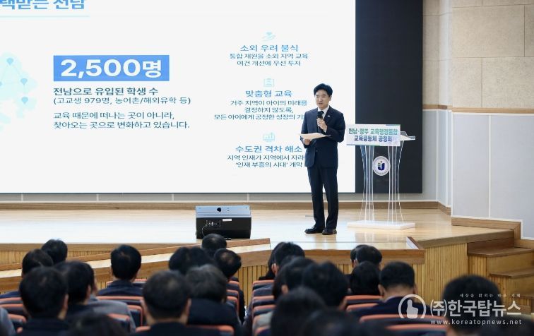 ㈜한국탑뉴스 고화랑 기자 | 전라남도교육청이 2월 6일 전라남도교육청교육연구정보원과 국립순천대학교 70주년기념관 우석홀에서 전남·광주 교육행정통합을 주제로 교육공동체 공청회를 열고 정책 비전과 추진 방향을 공유했다.
