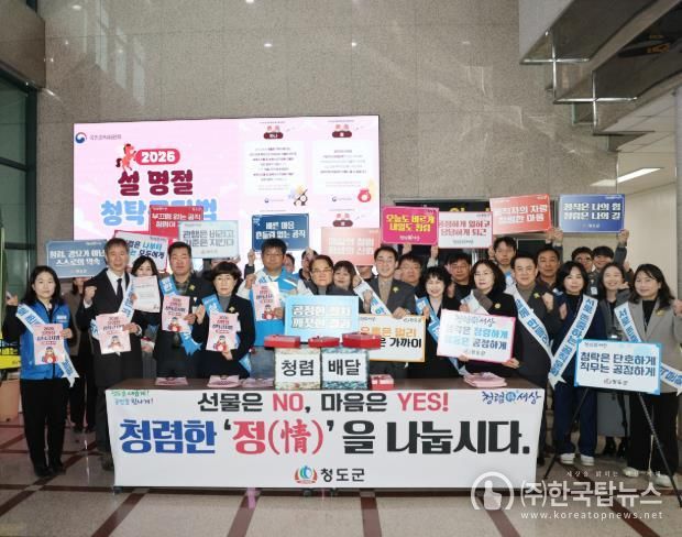 김하수 청도군수는 “청렴은 공직자가 갖춰야 할 가장 기본적인 덕목이자 자부심”이라며, “이번 캠페인을 통해 전 직원이 다시 한번 청렴 의지를 다지고, 법규를 철저히 준수하여 깨끗하고 당당한 명절 분위기를 만드는 데 앞장서겠다”고 밝혔다.