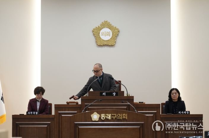 ㈜한국탑뉴스 송행임 기자 | 동래구의회는 지난 5일부터 9일까지 5일간 제341회 임시회를 열고, 구정 주요 현안과 의원발의 조례안에 대한 심사를 진행한 뒤 회기를 마무리했다.