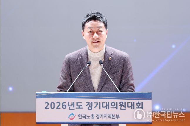 ㈜한국탑뉴스 송행임 기자 | 경기도의회 김진경(더민주·시흥3) 의장은 24일 열린 한국노총 경기지역본부(의장 김연풍) 2026년 정기대의원대회에서 노동자가 중심이 되는 노동의 지속가능성을 강조했다.