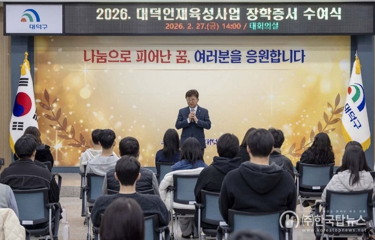 대덕구 관계자는 “대덕인재육성사업은 단순한 장학금 지원을 넘어 지역사회가 함께 미래 인재를 키워가는 뜻깊은 사업”이라며 “따뜻한 나눔으로 함께해 주신 후원 기업에 깊이 감사드리며, 학생들이 자신의 꿈을 향해 힘차게 나아가는 든든한 디딤돌이 되길 바란다”고 말했다.