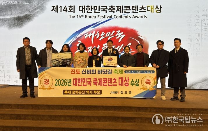 ㈜한국탑뉴스 송행임 기자 | 진도 신비의 바닷길 축제가 2026년 대한민국축제콘텐츠 대상에서 ‘축제문화유산‧역사 부문 대상’을 받으며 대한민국을 대표하는 해양문화축제로서의 위상을 다시 한번 입증했다.