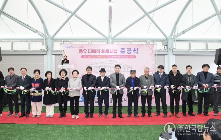 이날 준공식에서는 기념사·축사, 테이프 자르기, 기념 촬영, 시설 순회 등을 진행하며, 다목적 체육시설의 준공을 축하했다.