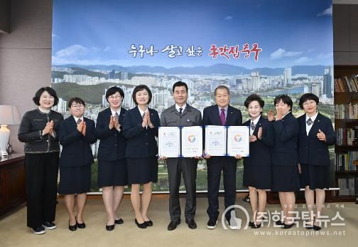 ㈜한국탑뉴스 송행임 기자 | 울산 중구와 울산안전생활실천시민연합이 3월 5일 오후 2시 중구청 구청장실에서 ‘안전취약계층 시민생활안전교육’ 운영을 위한 업무협약을 맺었다.