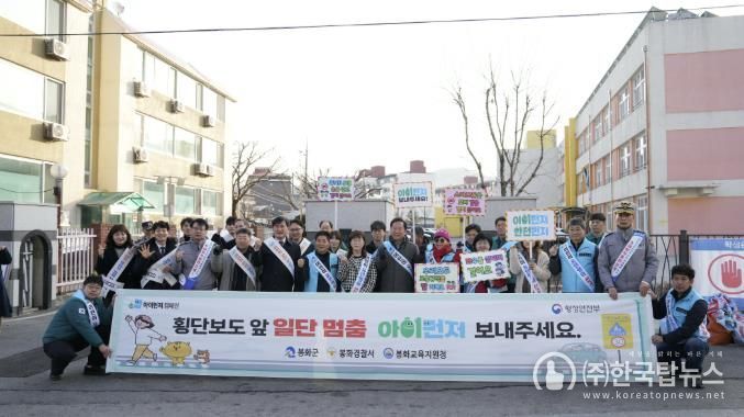 ㈜한국탑뉴스 송행임 기자 | 봉화군은 개학기를 맞아 어린이 교통안전 의식을 높이고 각종 범죄를 예방하기 위해 3월 5일 내성초등학교 일대에서 ‘초등학교 개학기 어린이 안전캠페인’을 실시했다. 이번 캠페인은 새 학기를 맞아 등·하굣길 교통사고를 예방하고, 어린이를 대상으로 한 약취·유인 범죄 예방 의식을 높이기 위해 마련됐다.