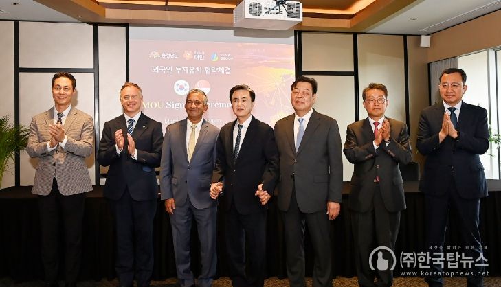 ㈜한국탑뉴스 차복원 기자 | 태안군이 6일 싱가포르 스위소텔 더 스탬포드 호텔에서 뷔나그룹과 1조 원대 재생에너지(해상풍력) 투자협약을 맺고 친환경 에너지 산업 중심지로의 도약에 나섰다.