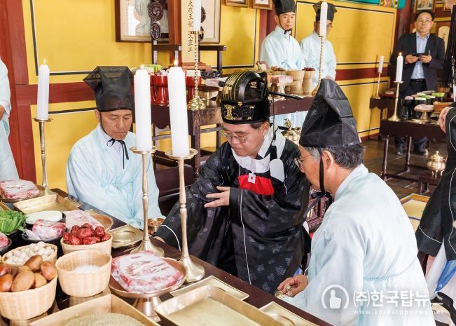 ㈜한국탑뉴스 차복원 기자 | 진교훈 강서구청장이 24일 서울 유일의 향교인 양천향교 ‘춘기 석전제’에 초헌관으로 참여해 옛 성현들을 기리며 제례를 올렸다.