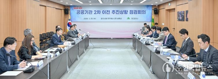 ㈜한국탑뉴스 송행임 기자 | 대구광역시는 3월 25일 시청 동인청사에서 김정기 대구광역시장 권한대행 주재로 ‘공공기관 2차이전 유치위원회’ 민간위원과 관계부서가 참여한 가운데, 2차 이전 추진상황을 점검하고 향후 대응계획을 논의했다.