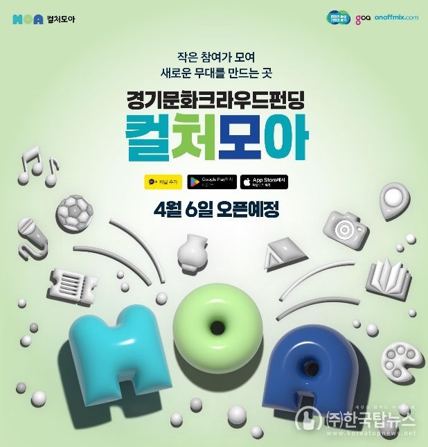㈜한국탑뉴스 송행임 기자 | 경기도민이 직접 투자하고 참여해 문화·예술인의 자생력을 키우는 경기도의 문화 크라우드펀딩 플랫폼 ‘컬처모아’가 4월 6일 공식 출범한다.