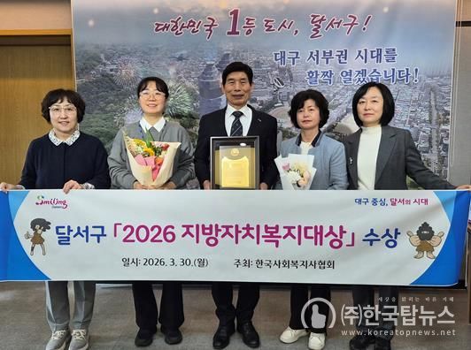 ㈜한국탑뉴스 송행임 기자 | 대구 달서구가 한국사회복지사협회가 주관하는‘2026 지방자치복지대상’에서 기초자치단체 부문 대상을 수상하며 복지 선도도시로서의 위상을 다시 한번 입증했다.