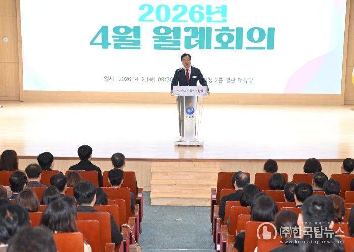 ㈜한국탑뉴스 송행임 기자 | 하남시는 2일 시청 별관 대강당에서 직원과 시민들이 참석한 가운데 ‘2026년 4월 월례회의’를 개최했다.