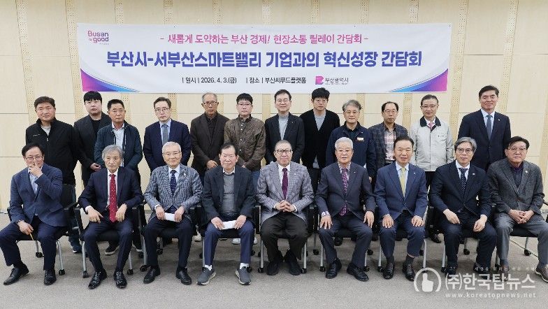 ㈜한국탑뉴스 차복원 기자 | 부산시는 오늘(3일) 오후 2시 30분, 사하구 부산씨푸드플랫폼 대회의실에서 서부산스마트밸리 기업과 함께 '제6차 기업 혁신성장 릴레이 간담회'를 개최한다고 밝혔다.