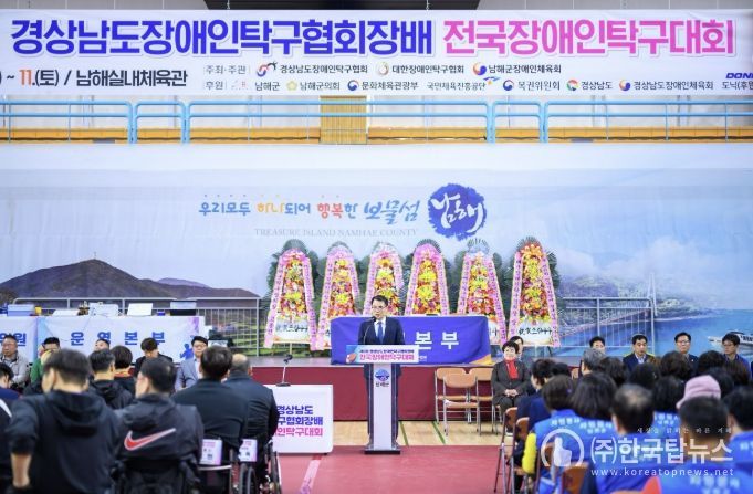 ㈜한국탑뉴스 송행임 기자 | 남해군은 지난 4월 10일부터 11일까지 이틀간 남해실내체육관에서 열린 ‘제8회 경상남도장애인탁구협회장배 전국장애인탁구대회’가 전국 장애인 탁구인들의 열정 속에 성황리에 마무리 됐다고 밝혔다.