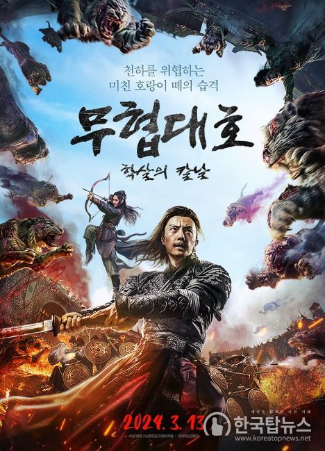 한국탑뉴스 한민석 기자 | 미친 호랑이 떼의 습격에 맞선 최후의 결투를 담은 정통 무협 액션 '무협대호: 학살의 칼날'이 3월 13일 개봉을 확정 짓고 메인 포스터와 메인 예고편, 보도스틸을 공개했다.[감독: 유문보 | 출연: 사묘, 홍가녕| 수입·배급: ㈜스튜디오 디에이치엘]