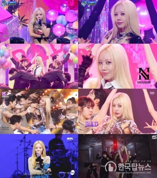 솔로로는 4년여 만에 음악 방송에 출연한 김남주는 ‘BAD’로 파워풀한 퍼포먼스와 함께 안정적인 라이브를 펼치며 음악 팬들의 취향을 저격했다.