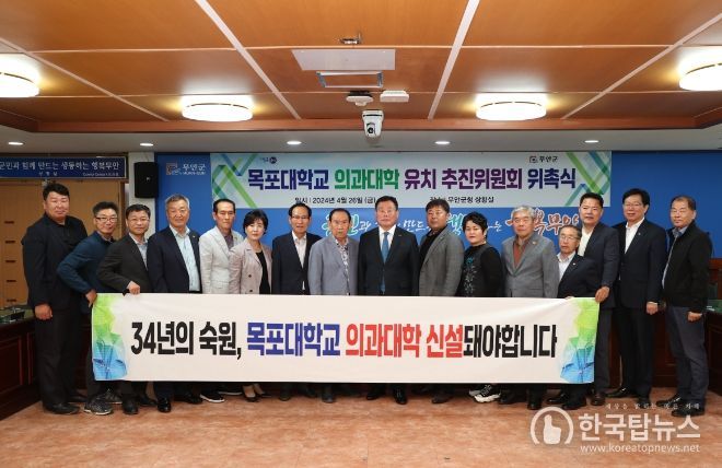 이날 군은 목포대학교 의과대학 유치 추진위원회에 무안군 기관·사회단체장 20명을 위원으로 위촉하고 위촉장을 수여했으며, 추진위는 국립목포대학교 의과대학 유치 추진을 위한 본격적인 활동을 펼칠 예정이다.